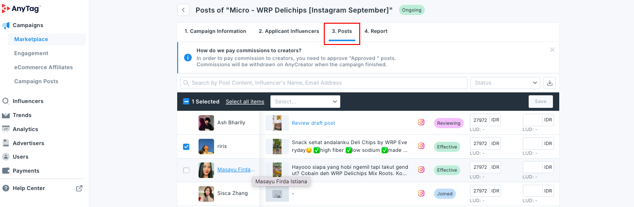 ### 4. AnyTag will start to fetch the new post and the data automatically when the influencer posts it