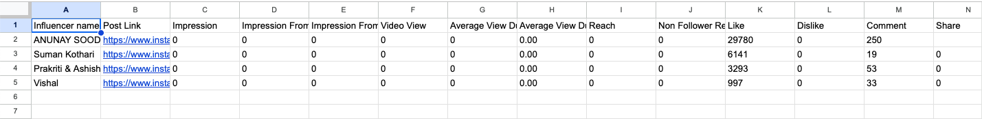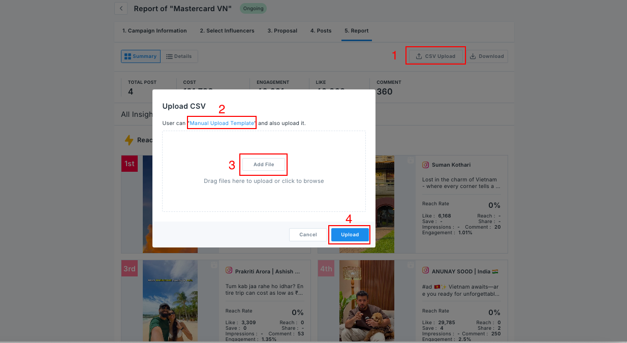 Besides automatically fetched post data via API/using OCR , sometimes due to system errors, some metrics are missing, we can manually upload them. Please follow these instructions: