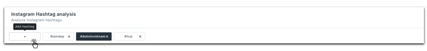 Click on **\[   +   ]** button to add hashtags/ keywords you want to analyze and include in your insights.
