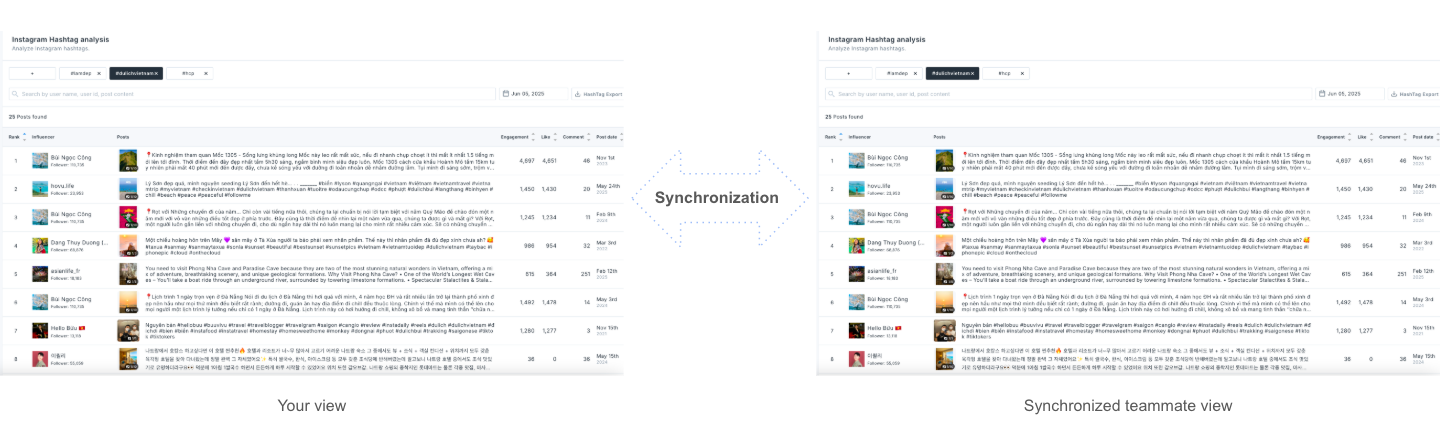 This feature automatically syncs and updates hashtags and keywords across all internal users in your team — enabling **real-time alignment**, **standardized data management**, and **seamless cross-team coordination!**